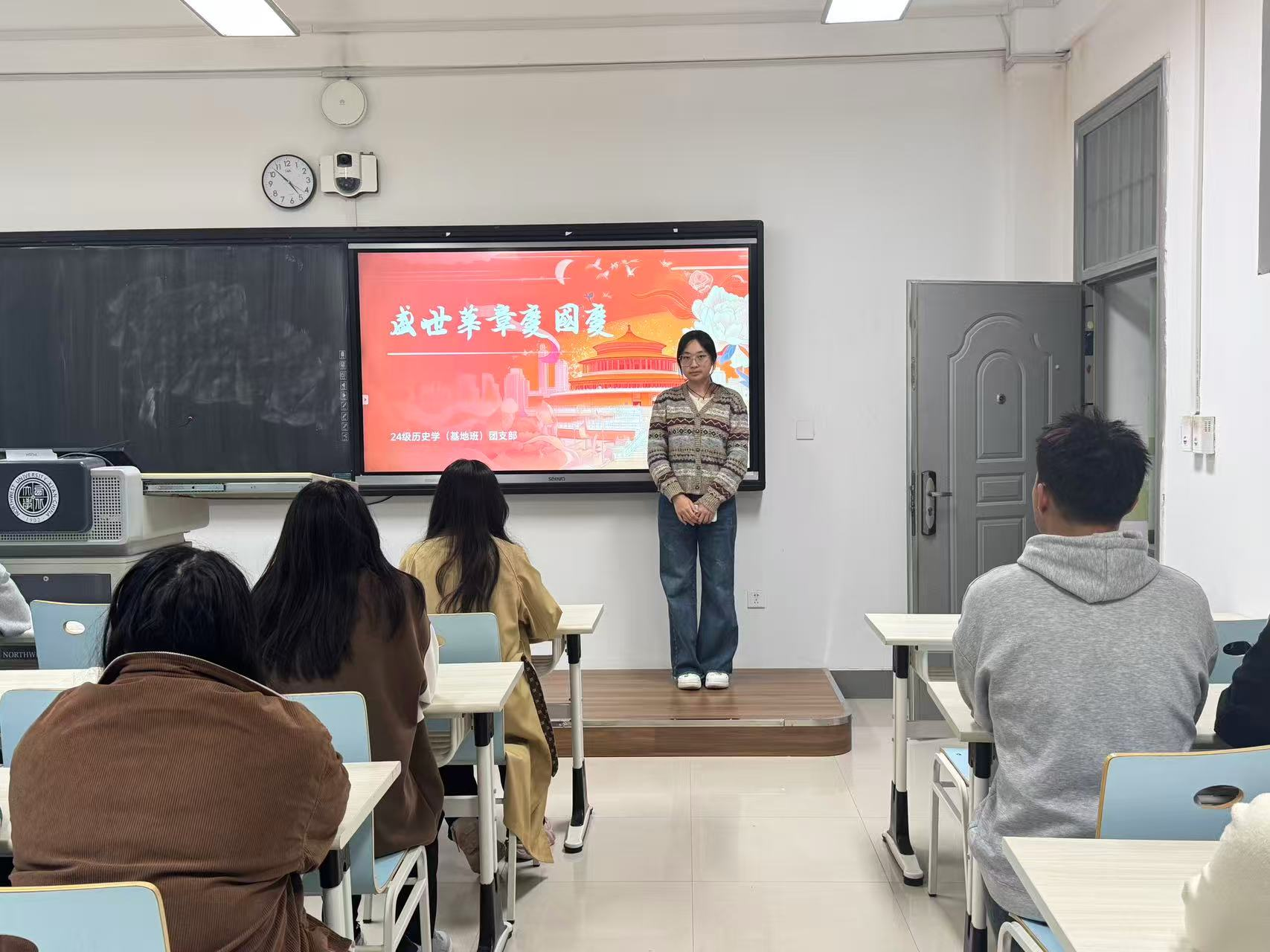 2024级历史学(基地班)团支部组织开展了“七十六载迎华诞,青春奋进新时代”主题团日活动。在团支部书记的带领下,支部团员中更加明晰了应当自觉践行“志不立,天下无可成之事”“宝剑锋从磨砺出,梅花香自苦寒来”“纸上得来终觉浅,绝知此事要躬行”“少年强则国强”的古训与箴言的时代内涵,纷纷表示要以青春之我投身教育报国、文化传承的实践中,用扎实学识和不懈奋斗为祖国76华诞书写青春注脚,用实际行动为新时代中国特色社会主义事业添砖加瓦。