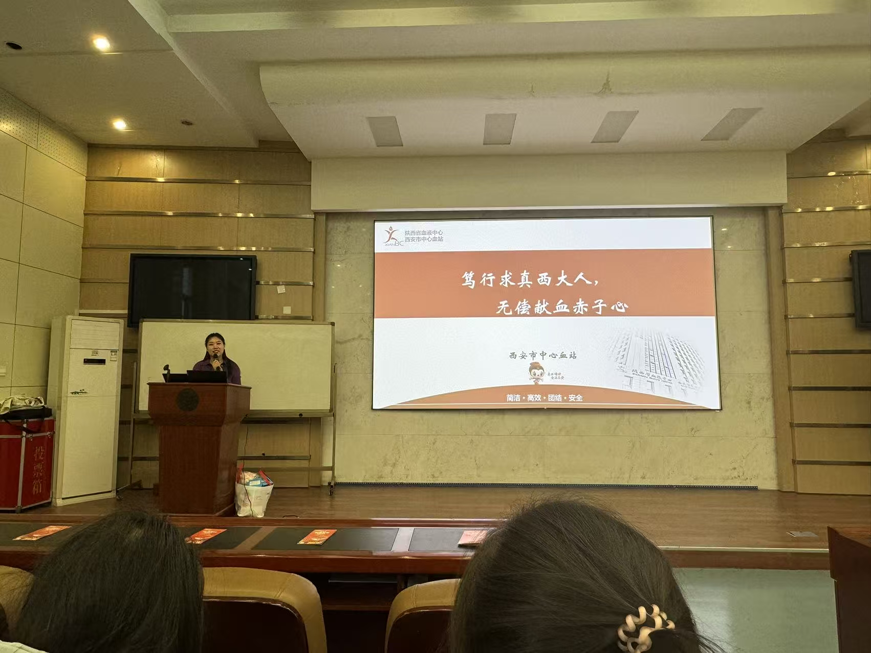 陕西省血液中心体采一科副主任张铃浩围绕献血意义、流程规范、相关政策,针对“献血前检查项目”“献血对健康的影响”“用血费用构成”等学生关切问题给师生们进行宣讲与精准解答。此次宣讲调动了师生们的参与热情,让科学献血、无损健康的理念能够在轻松氛围中深入人心,为后续献血志愿服务的开展奠定了良好基础。