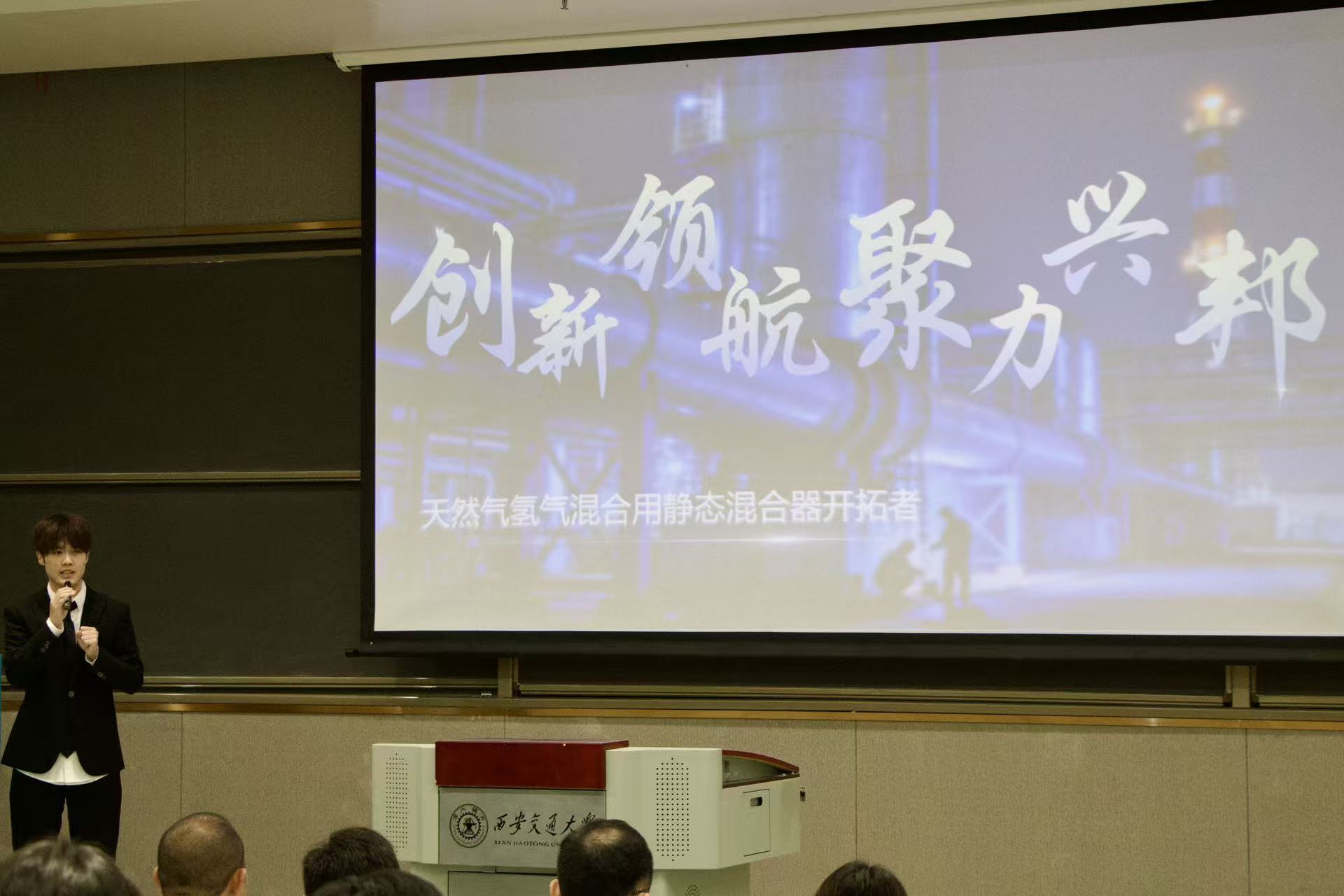 我校化工学院2024级过程装备与控制工程专业本科生何贞昊携《混然天成—天然气氢气混合用静态混合器》项目参与现场路演与展览。该项目聚焦能源高效利用领域,通过创新静态混合技术优化天然气与氢气的混合效率,为清洁能源应用提供切实可行的技术方案。路演过程中,专家评委对项目的技术创新性与市场应用潜力给予肯定,充分展现了我校学生在科技创新与创业实践中的探索成果。