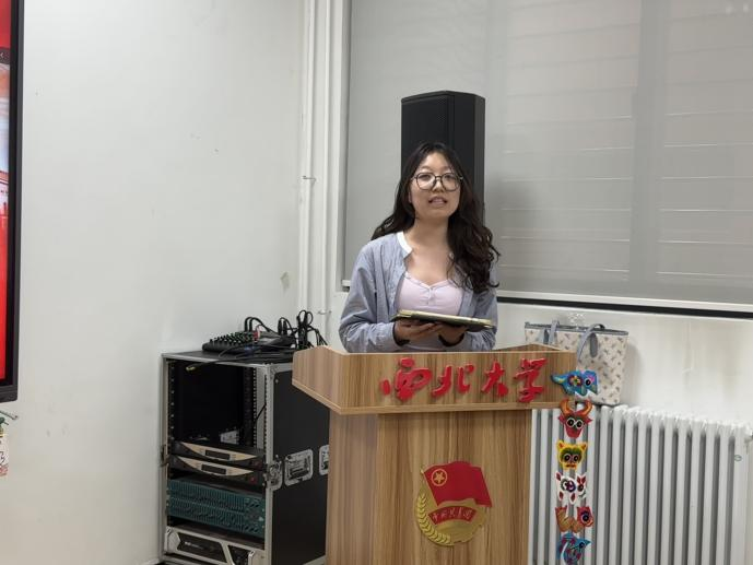 随后,西北大学青年先锋宣讲团成员祁祾作题为“从指尖非遗到国家名片:西秦刺绣赋能文化强国建设之路”的专题宣讲。她首先介绍了我国在文化强国建设方面取得的历史性成就,强调坚持中国特色社会主义文化发展道路的重大意义。接着,她从起源脉络、历代演变与地域特色等多个维度对西秦刺绣进行了生动讲解,并配合实物展示,使学员们直观感受非遗魅力。最后,她结合地方习俗,阐释西秦刺绣所承载的社会文化象征,并分享了现代工艺创新为其传承发展注入的新动力。