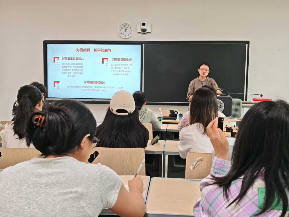 围绕“新中国涅槃史”,吴静雯梳理了1949年新中国成立后面临的内忧外患,包括国内战争创伤和经济百废待兴,以及国际上的封锁孤立。她重点讲解了“为何阅兵”的深层意义:对外,阅兵是展示自卫能力、捍卫主权和领土完整的窗口;对内,是凝聚国民信心、增强民族自豪感的纽带;对历史,更是兑现“不再挨打”承诺、告慰先烈的行动。这一环节让学员们深刻认识到,国家的强大是和平发展的根本底气。