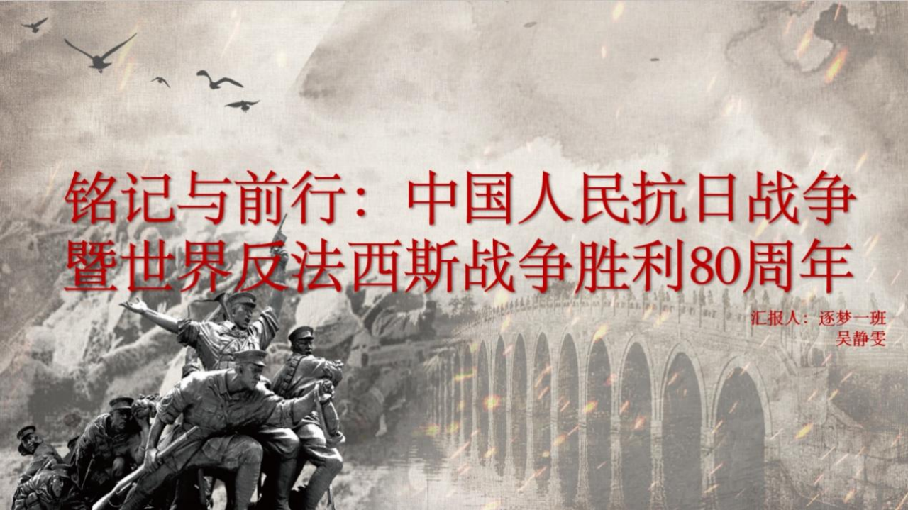 2025年9月3日中午,西北大学“青马工程”逐梦一班成功举办“铭记与前行:中国人民抗日战争暨世界反法西斯战争胜利80周年”主题教育活动。本次活动旨在传承红色基因、厚植爱国情怀,引导青年马克思主义者从抗战历史中汲取奋进力量。活动由班级宣传委员吴静雯主持,通过理论讲解、视频观看、交流研讨等多种形式,全体学员重温抗战岁月,深刻感悟时代责任。