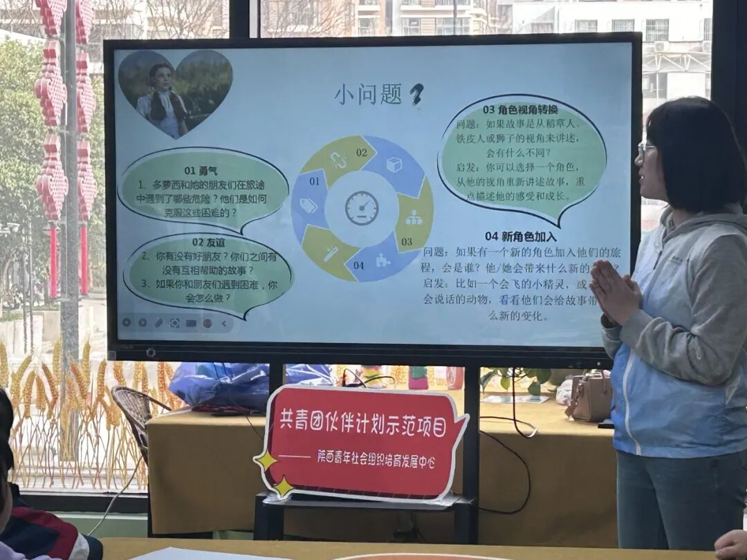 宣讲结束后,志愿者们在航开路社区青兜兜公益市集开展“童心创作绘”公益启蒙课活动,将绘画、故事创作等元素融入小学写作课程教学,激发儿童创意思维,为孩子们带去一场别开生面的“创意写作课”,用文字和绘画搭建起连接现实与幻想的桥梁。