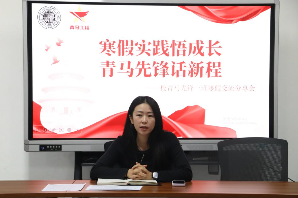 分享环节结束后,班主任杨琬钰老师对同学们的实践成果和精彩分享给予高度肯定。她指出,同学们的寒假充实而有意义,充分展现了青马学员积极向上、知行合一的精神风貌。杨老师强调,实践是青年成长成才的必由之路,鼓励大家将个人理想融入国家发展大局,积极投身乡村振兴、基层治理等广阔天地,在实践中增长见识、增强才干,努力成长为可堪大用、能担重任的时代新人。