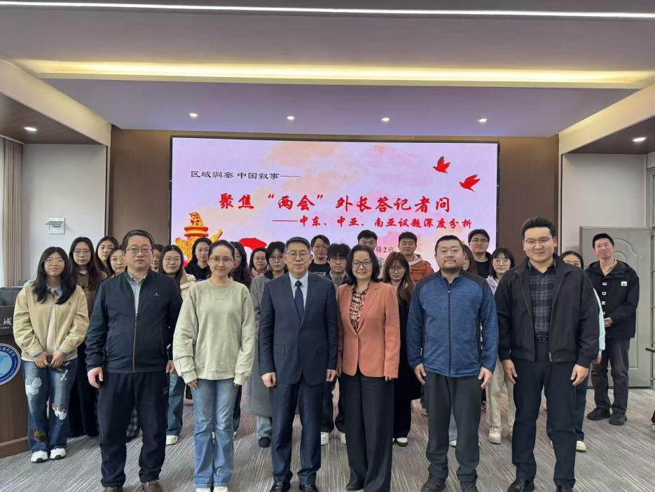 为深入学习全国两会精神,引导青年学子洞察国际时局、强化使命担当,2026年3月10日,西北大学第十八期“青年马克思主义者培养工程”先锋2班与区域国别学院在树人启智报告厅联合举办了“聚焦‘两会’外长答记者问”主题研学活动。区域国别学院党支部书记任惠莲、卢山冰教授、李玮副教授出席活动。活动由先锋2班班主任、区域国别学院团委书记牛少轩主持。